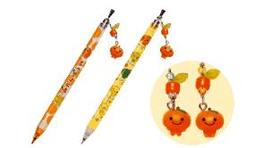 マスコット付シャープペン・ボールペン (各¥380) ちっちゃなみかんぼうやに胸キュン!! |